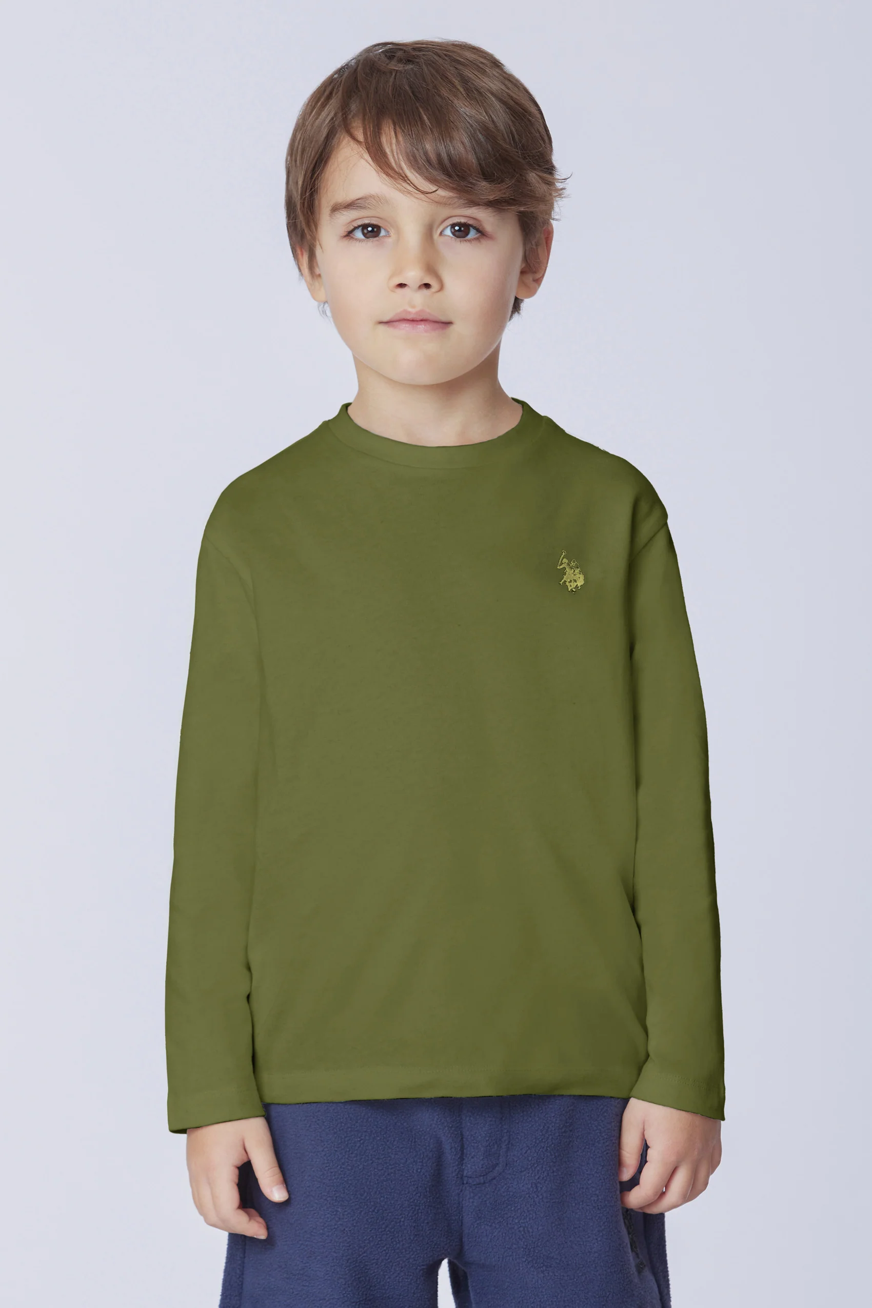 Descrizione: T-shirt girocollo a maniche lunghe da bambino in tessuto cotone jersey carbon finishing arricchita dal ricamo a filo del logo Double Horsemen lato cuore. Un capo dalle linee essenziali e versatile, perfetto per creare look casual e pratici.